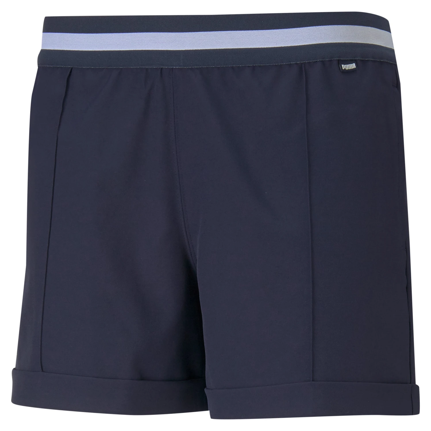 Look and play your best in the Puma Elastic Golf Shorts. These shorts are some of the shorter options that Puma carries with a four inch inseam and they feature a fashionable and flattering elastic waistband with permanent bottom cuffs that will keep you comfortable while looking good. The Elastic shorts are moisture wicking and quick drying to keep you dry and comfortable throughout the round and front and back pockets come in handy for storing balls, tees and scorecard.