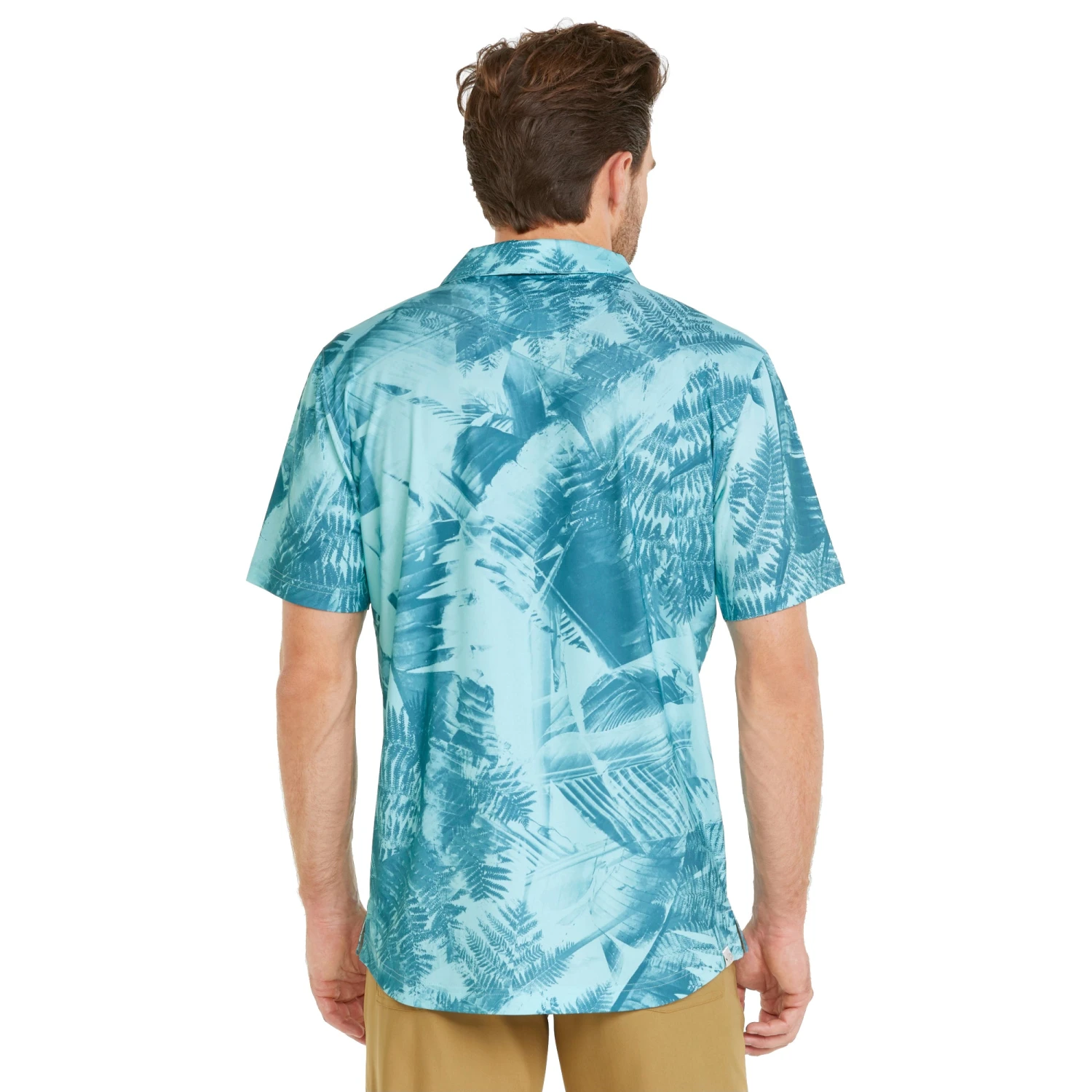 Add some fun styling to your golf wardrobe with the Puma MATTR Palm Leaves Golf Polo. This polo is part of the Tropical Breeze collection and features Puma MATTR technology that is moisture wicking and quick drying to keep you dry and comfortable throughout the round. The four-way stretch allows you to move and swing in comfort and the all-over palm leaves print adds fun styling that will have you looking good on and off the golf course.